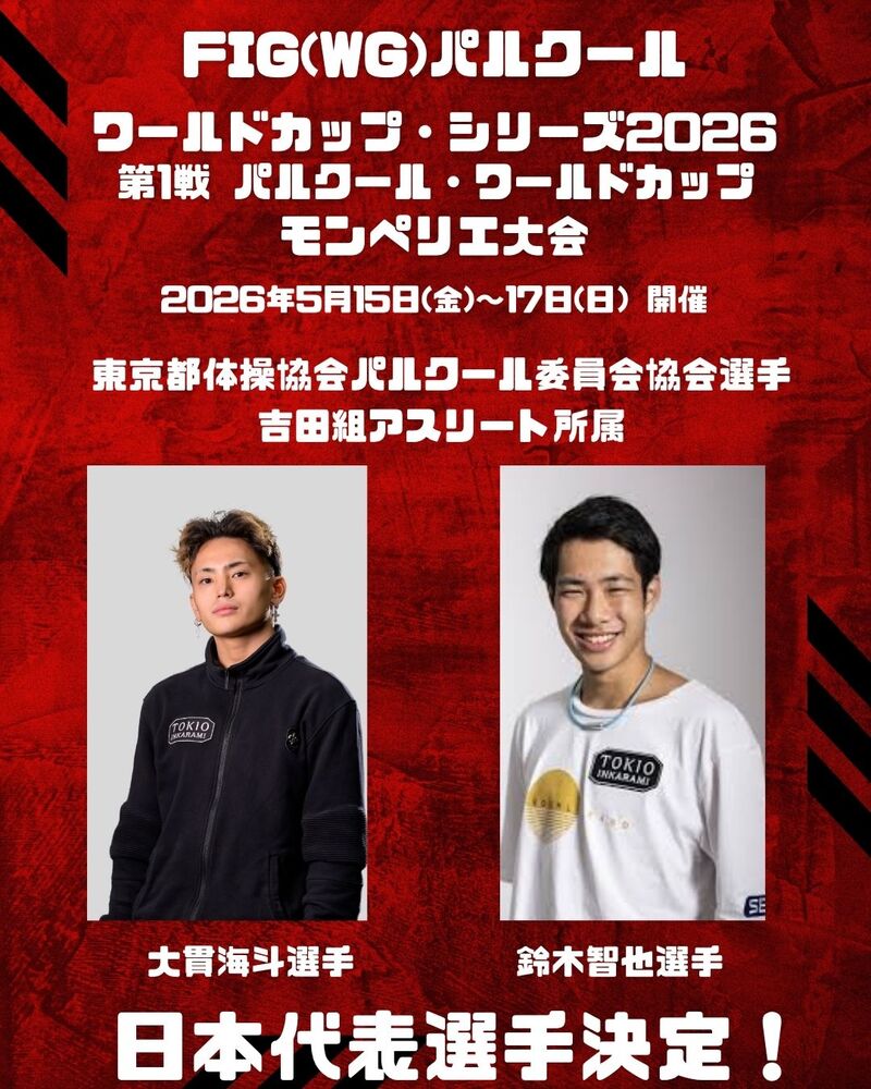 「FIG(WG)パルクール・ワールドカップ・シリーズ2026 」大貫海斗選手 鈴木智也選手 日本代表選手決定!